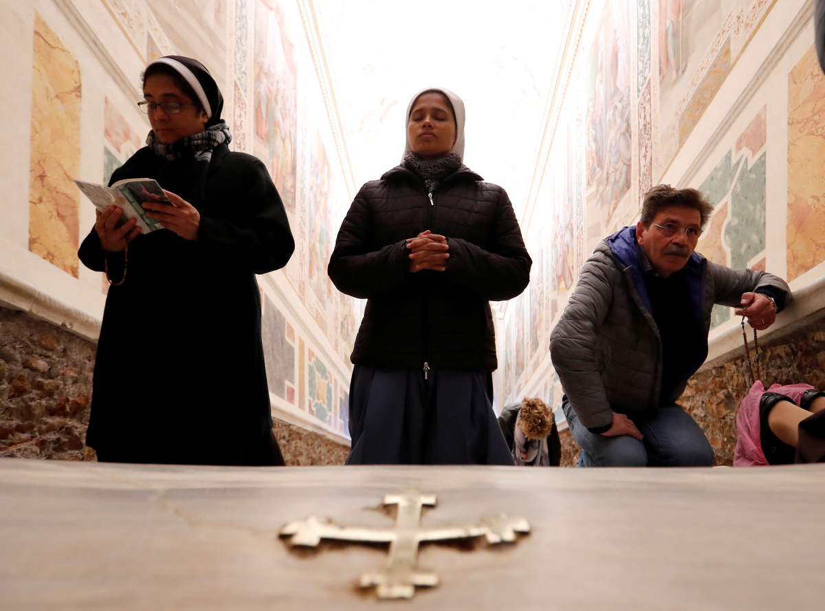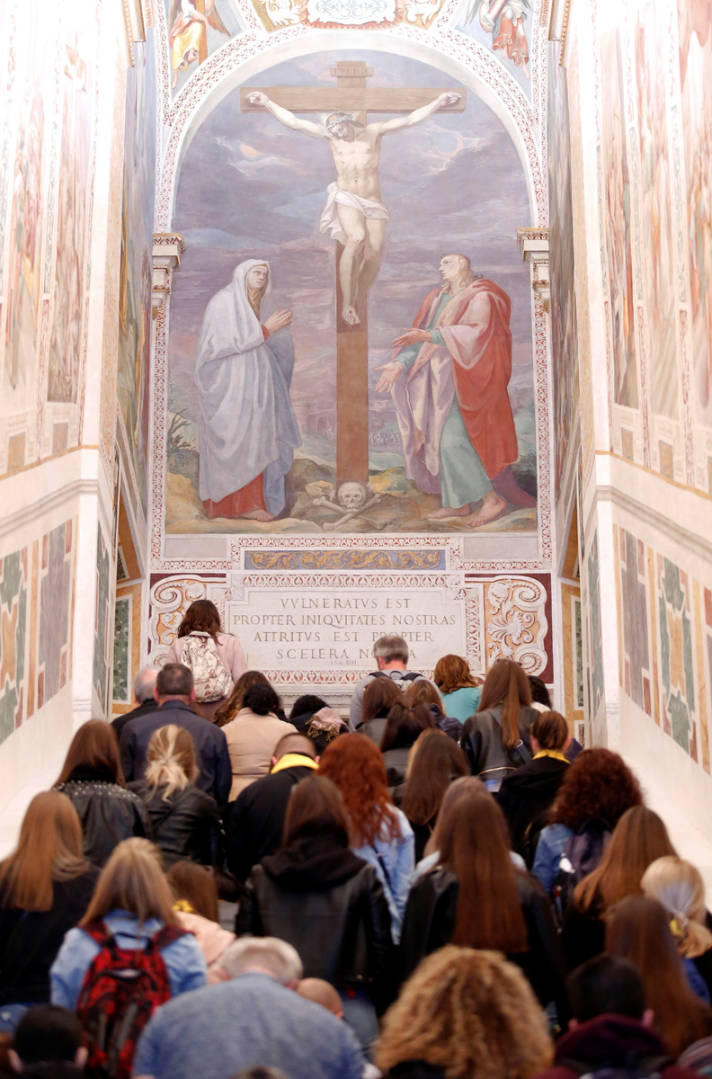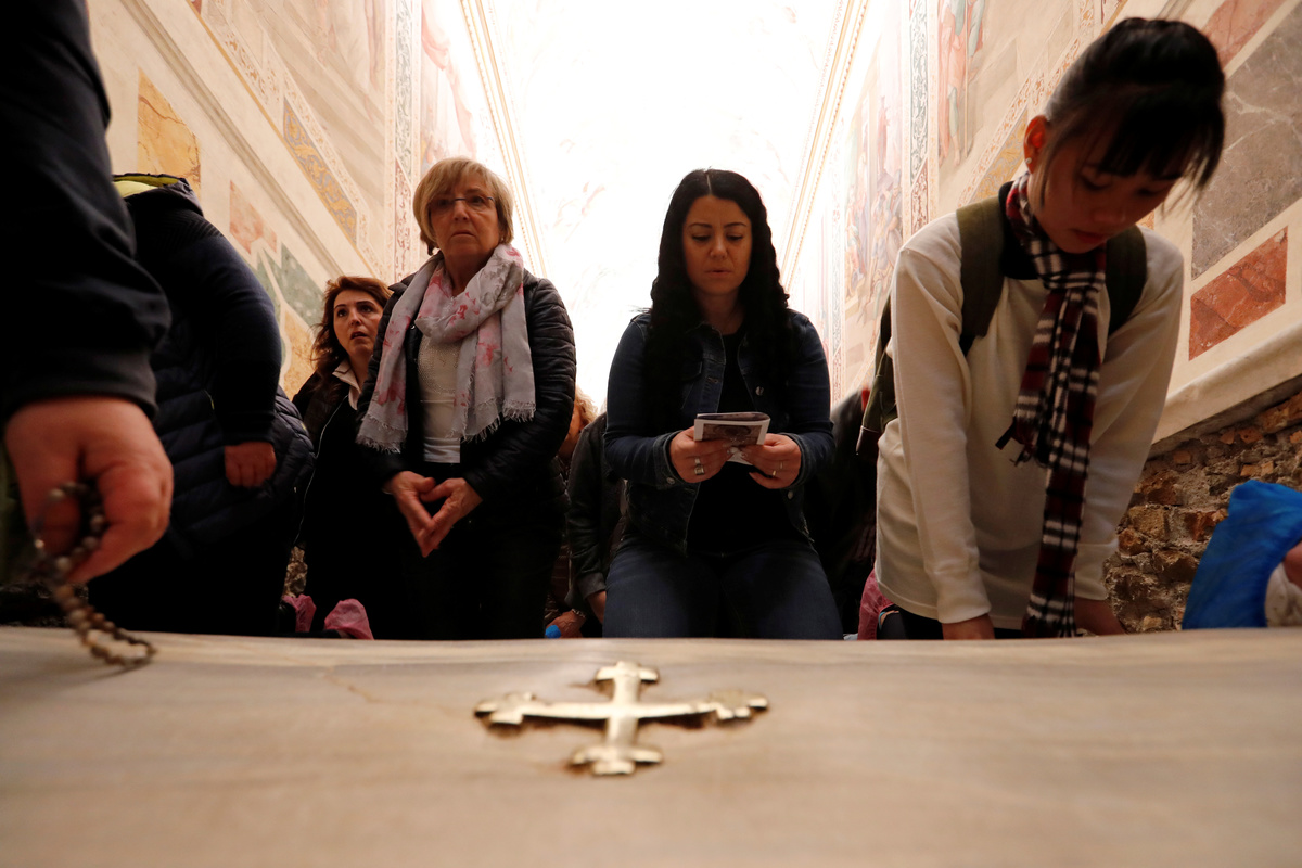"We have seen these steps carved out in a totally unusual way. The feet of pilgrims had literally excavated them," said Father Francesco Guerra, rector of the Holy Stairs Sanctuary, which hundreds of thousands of pilgrims visit each year.