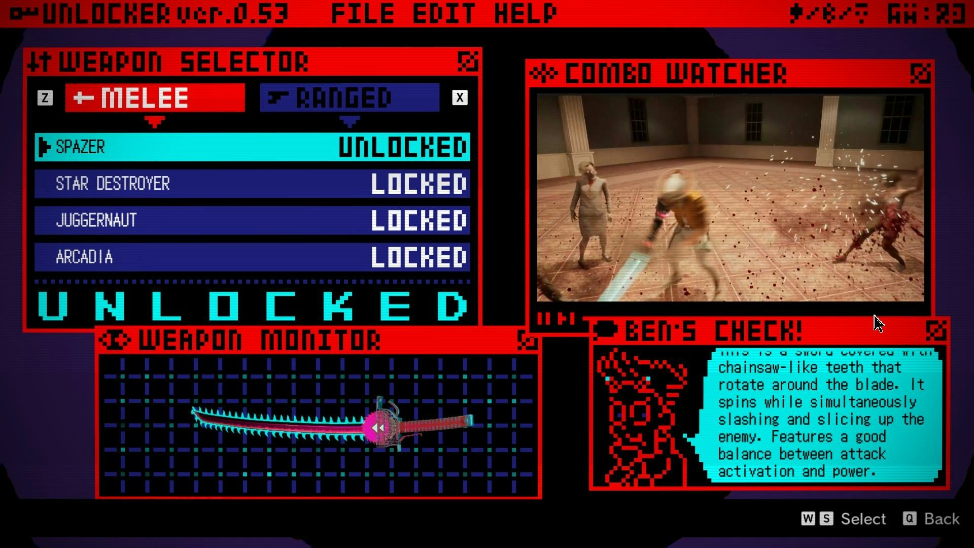 The action and exploration in Romeo Is a Dead Man feels great, most comparable to Suda’s No More Heroes game, in a good way — but the biggest surprise is your home base between ships. Themed as a retro-2D game, the FBI ship houses all your upgrade facilities, and it’s also one of the most fascinating experiments I’ve seen in video game menu and UI design.