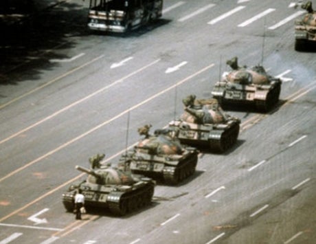 “Tank man” was the nickname for the unidentified protester who was pictured standing in front of tanks that drove into Tiananmen Square in Beijing on 4 June, 1989, during the Chinese government’s brutal massacre of pro-democracy activists.