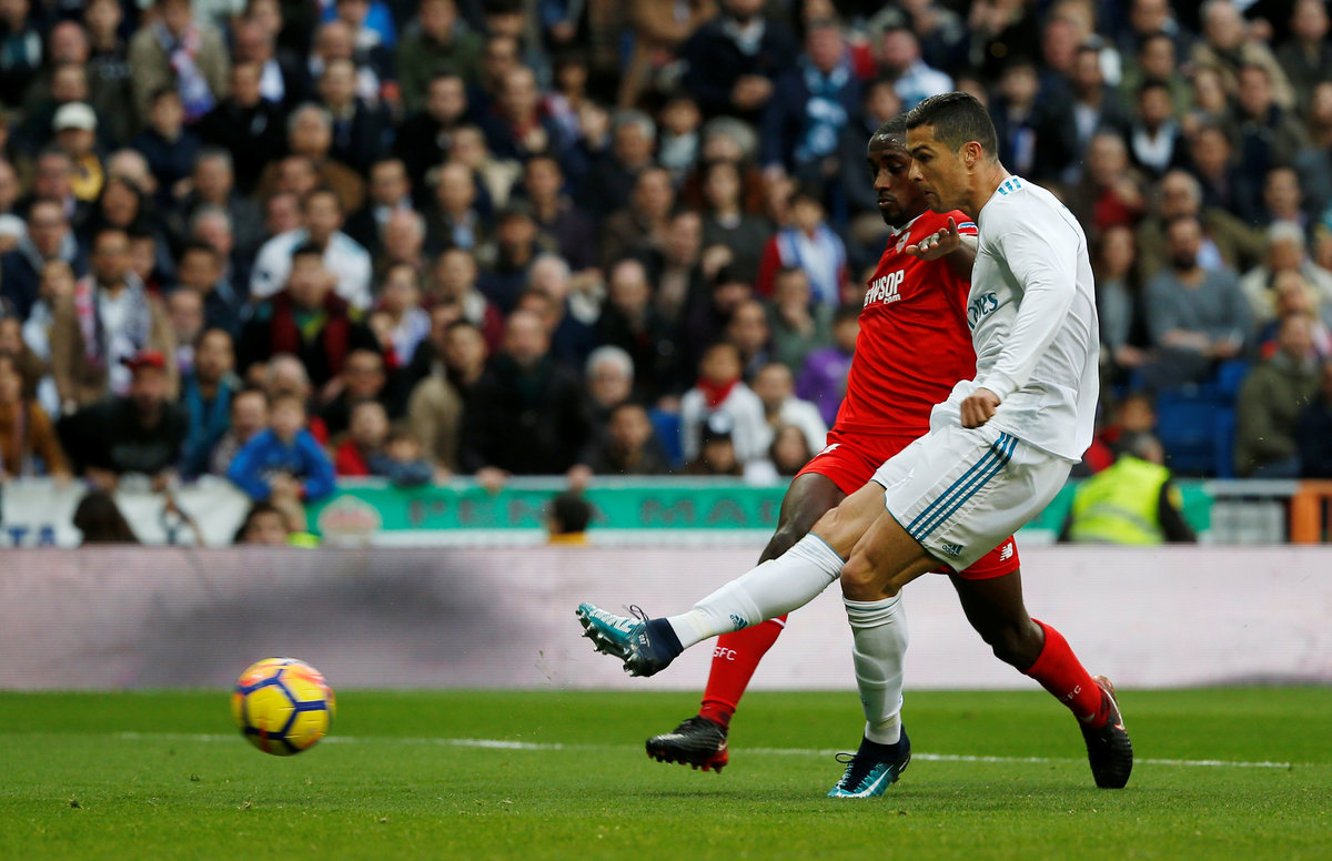 Ronaldo, who had paraded his joint-record five Ballon d'Or trophies on the Santiago Bernabeu pitch before kick-off, side-footed home a through ball from Marco Asensio to score the second before thumping in the third from the penalty spot.