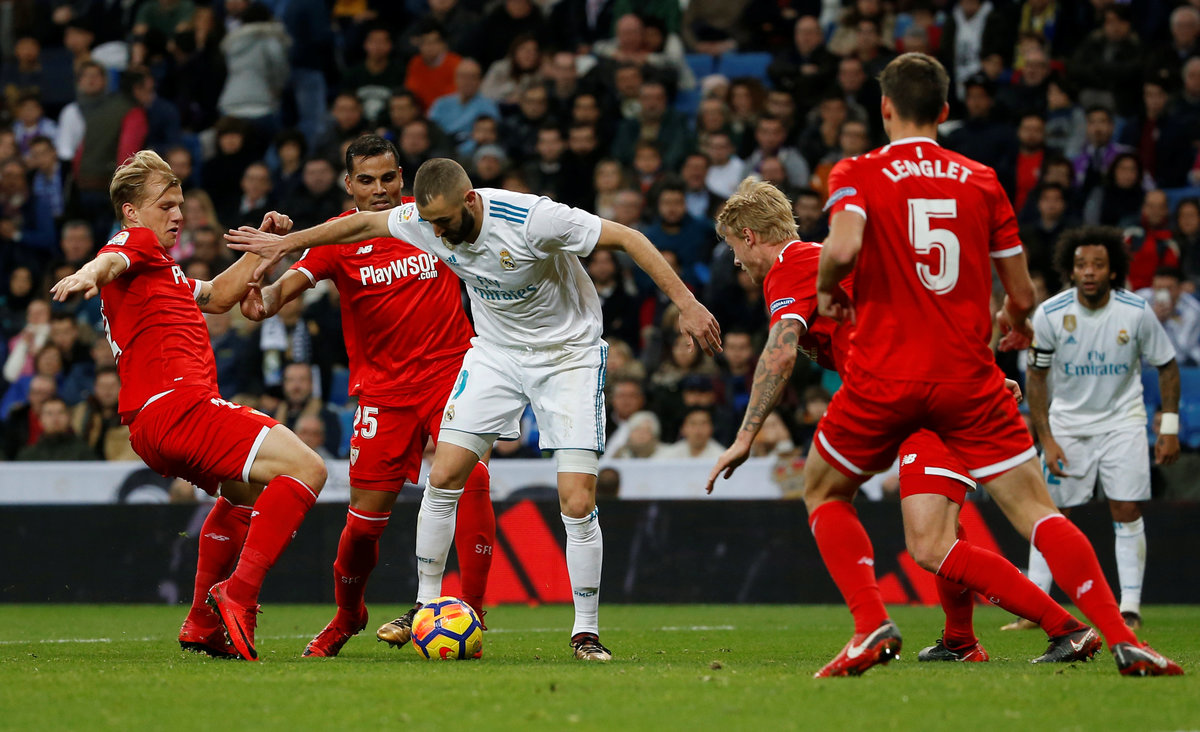 In Madrid, Real overcame a selection crisis in defence to crush Sevilla with a lethal attacking display, scoring all their goals before halftime.