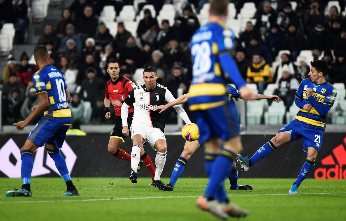 Ronaldo lit up an uneventful first half with the game’s first goal two minutes before halftime by cutting inside and firing in a finish, aided by a deflection off Parma defender Matteo Darmian.
