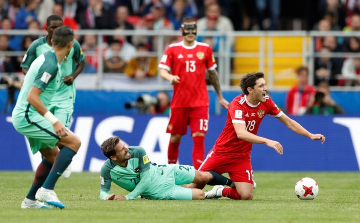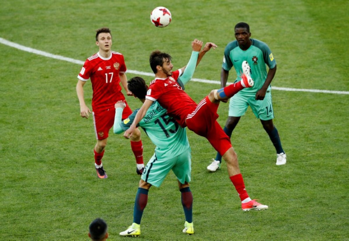 Soccer Football - Russia v Portugal - FIFA Confederations Cup Russia 2017 - Group A - Spartak Stadium, Moscow, Russia - June 21, 2017 Portugal’s Adrien Silva in action with Russia’s Yuri Zhirkov REUTERS/John SibleySoccer Football - Russia v Portugal - FIFA Confederations Cup Russia 2017 - Group A - Spartak Stadium, Moscow, Russia - June 21, 2017 Portugal’s Adrien Silva in action with Russia's Alexandr Erokhin REUTERS/John SibleySoccer Football - Russia v Portugal - FIFA Confederations Cup Russia 2017 - Group A - Spartak Stadium, Moscow, Russia - June 21, 2017 Russia’s Yuri Zhirkov in action with Portugal’s Andre Gomes REUTERS/Maxim ShemetovSoccer Football - Russia v Portugal - FIFA Confederations Cup Russia 2017 - Group A - Spartak Stadium, Moscow, Russia - June 21, 2017 Portugal’s Cristiano Ronaldo celebrates after the match REUTERS/Darren StaplesSoccer Football - Russia v Portugal - FIFA Confederations Cup Russia 2017 - Group A - Spartak Stadium, Moscow, Russia - June 21, 2017 Russia’s Fedor Smolov in action with Portugal’s Eliseu REUTERS/Maxim ShemetovSoccer Football - Russia v Portugal - FIFA Confederations Cup Russia 2017 - Group A - Spartak Stadium, Moscow, Russia - June 21, 2017 Portugal’s Cristiano Ronaldo celebrates after the match with Bruno Alves and teammates REUTERS/John SibleySoccer Football - Russia v Portugal - FIFA Confederations Cup Russia 2017 - Group A - Spartak Stadium, Moscow, Russia - June 21, 2017 Russia's Alexandr Erokhin in action with Portugal’s Andre Gomes REUTERS/Darren StaplesSoccer Football - Russia v Portugal - FIFA Confederations Cup Russia 2017 - Group A - Spartak Stadium, Moscow, Russia - June 21, 2017 PortugalÕs Cristiano Ronaldo and Bruno Alves celebrate after the match REUTERS/John SibleySoccer Football - Russia v Portugal - FIFA Confederations Cup Russia 2017 - Group A - Spartak Stadium, Moscow, Russia - June 21, 2017 Portugal’s Cristiano Ronaldo in action with Russia’s Fyodor Kudryashov REUTERS/Darren StaplesSoccer Football - Russia v Portugal - FIFA Confederations Cup Russia 2017 - Group A - Spartak Stadium, Moscow, Russia - June 21, 2017 Russia coach Stanislav Cherchesov REUTERS/Maxim Shemetov