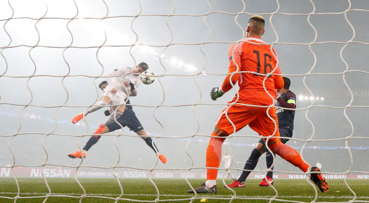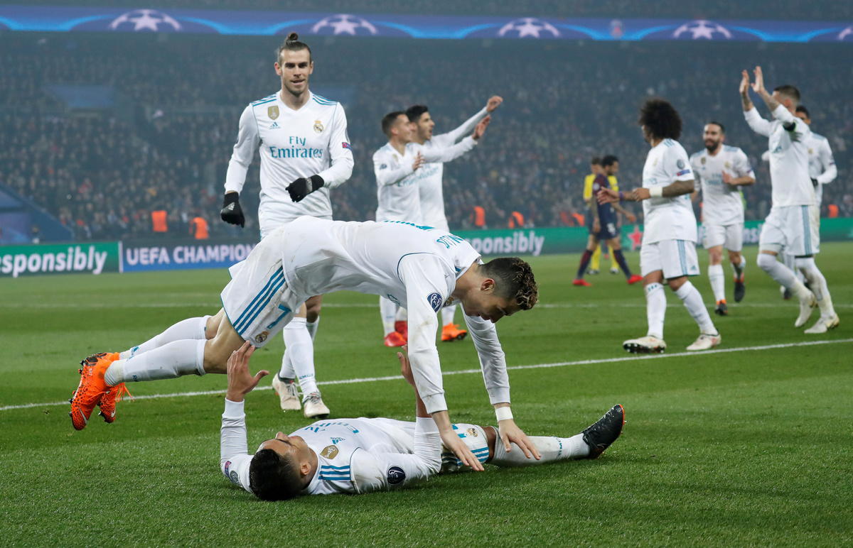 Soccer Football - Champions League Round of 16 Second Leg - Paris St Germain vs Real Madrid - Parc des Princes, Paris, France - March 6, 2018 Real Madrid’s Cristiano Ronaldo scores their first goal REUTERS/Gonzalo FuentesSoccer Football - Champions League Round of 16 Second Leg - Paris St Germain vs Real Madrid - Parc des Princes, Paris, France - March 6, 2018 Paris Saint-Germain’s Thiago Silva shakes hands with Real Madrid’s Marcelo after the match REUTERS/Gonzalo FuentesSoccer Football - Champions League Round of 16 Second Leg - Paris St Germain vs Real Madrid - Parc des Princes, Paris, France - March 6, 2018 Paris Saint-Germain’s Thiago Silva applauds fans after the match REUTERS/Gonzalo FuentesSoccer Football - Champions League Round of 16 Second Leg - Paris St Germain vs Real Madrid - Parc des Princes, Paris, France - March 6, 2018 Paris Saint-Germain coach Unai Emery REUTERS/Gonzalo FuentesSoccer Football - Champions League Round of 16 Second Leg - Paris St Germain vs Real Madrid - Parc des Princes, Paris, France - March 6, 2018 Paris Saint-Germain’s Adrien Rabiot in action with Real Madrid’s Isco REUTERS/Benoit TessierSoccer Football - Champions League Round of 16 Second Leg - Paris St Germain vs Real Madrid - Parc des Princes, Paris, France - March 6, 2018 Real Madrid’s Dani Carvajal and Raphael Varane celebrate after the match REUTERS/Benoit TessierSoccer Football - Champions League Round of 16 Second Leg - Paris St Germain vs Real Madrid - Parc des Princes, Paris, France - March 6, 2018 Real Madrid’s Dani Carvajal celebrates after Casemiro scores their second goal REUTERS/Benoit Tessier