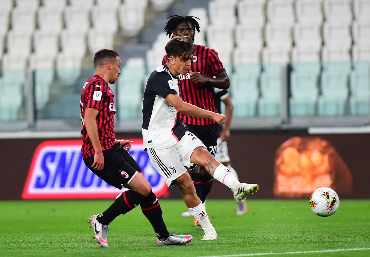 Soccer Football - Coppa Italia Semi Final Second Leg - Juventus v AC Milan - Allianz Stadium, Turin, Italy - June 12, 2020 Juventus' Paulo Dybala shoots at goal, as play resumes behind closed doors following the outbreak of the coronavirus disease (COVID-19) REUTERS/Massimo Pinca