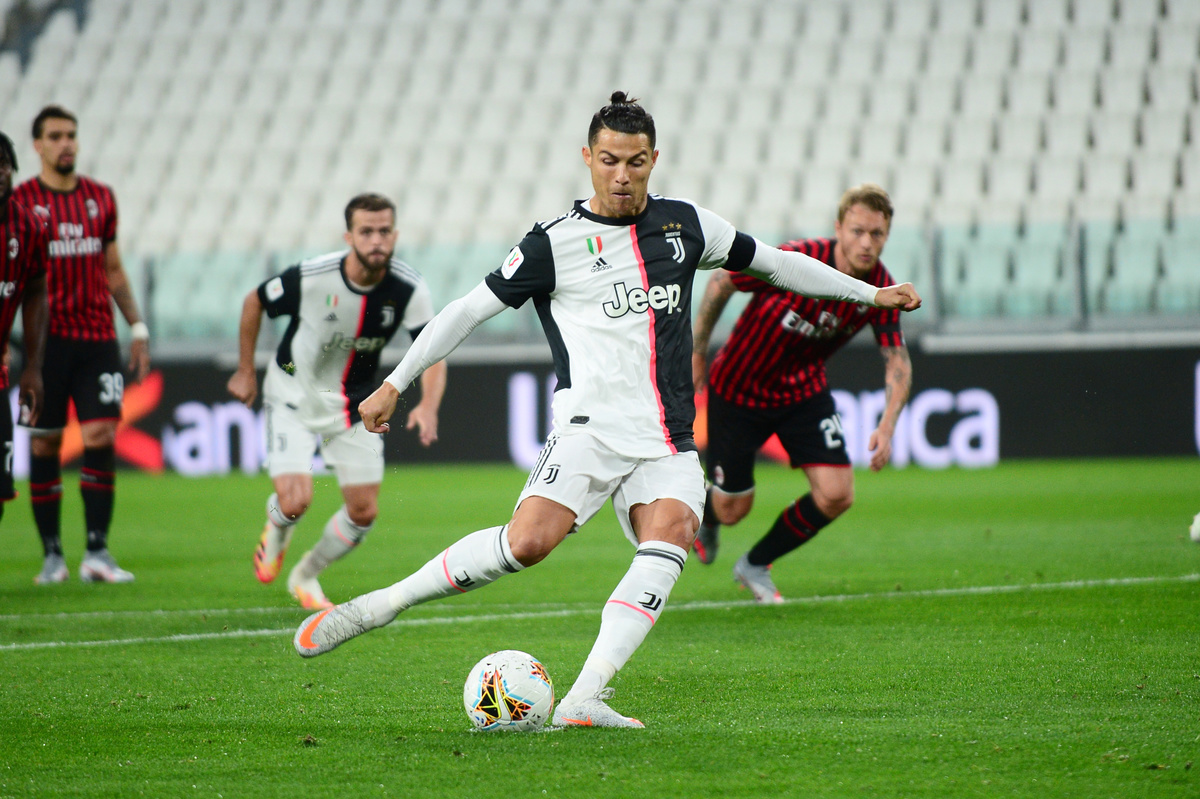 Soccer Football - Coppa Italia Semi Final Second Leg - Juventus v AC Milan - Allianz Stadium, Turin, Italy - June 12, 2020 Juventus' Cristiano Ronaldo misses from the penalty spot, as play resumes behind closed doors following the outbreak of the coronavirus disease (COVID-19) REUTERS/Massimo Pinca