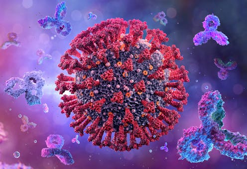One of the mAbs is derived from a COVID-fighting immune cell taken from a human survivor of the disease. The other was produced in a mouse genetically modified to have a human immune system. The advantage of combining the two is that they target two different parts of the spike protein, many of which protrude from the coronavirus – these are what it uses to bind with ACE2. Using both reduces the chance of the virus escaping from the immune system.