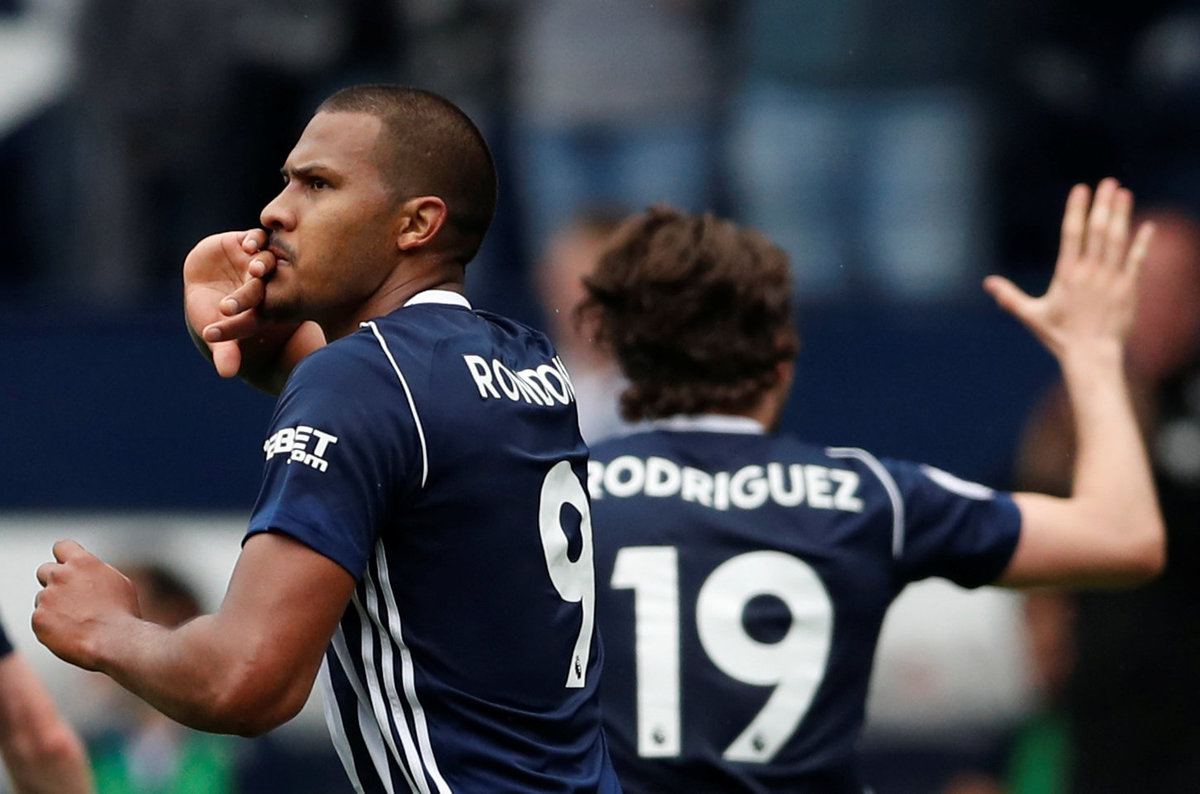 Soccer Football - Premier League - West Bromwich Albion v Liverpool - The Hawthorns, West Bromwich, Britain - April 21, 2018 West Bromwich Albion's Salomon Rondon celebrates scoring their second goal Action Images via Reuters/Andrew Boyers