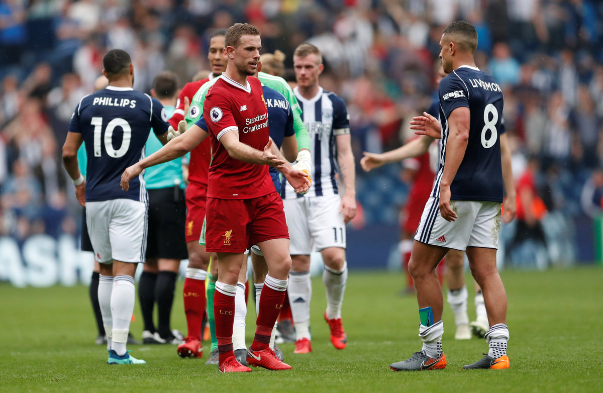 Soccer Football - Premier League - West Bromwich Albion v Liverpool - The Hawthorns, West Bromwich, Britain - April 21, 2018 Liverpool's Mohamed Salah scores their second goal Action Images via Reuters/Andrew Boyers Soccer Football - Premier League - West Bromwich Albion v Liverpool - The Hawthorns, West Bromwich, Britain - April 21, 2018 Liverpool's Mohamed Salah celebrates scoring their second goal REUTERS/Andrew YatesSoccer Football - Premier League - West Bromwich Albion v Liverpool - The Hawthorns, West Bromwich, Britain - April 21, 2018 West Bromwich Albion's Salomon Rondon fouls Liverpool's Ragnar Klavan Action Images via Reuters/Andrew Boyers Soccer Football - Premier League - West Bromwich Albion v Liverpool - The Hawthorns, West Bromwich, Britain - April 21, 2018 West Bromwich Albion's Jake Livermore scores their first goal Action Images via Reuters/Andrew Boyers Soccer Football - Premier League - West Bromwich Albion v Liverpool - The Hawthorns, West Bromwich, Britain - April 21, 2018 Liverpool's Jordan Henderson in action Action Images via Reuters/Andrew BoyersSoccer Football - Premier League - West Bromwich Albion v Liverpool - The Hawthorns, West Bromwich, Britain - April 21, 2018 Liverpool's Loris Karius saves a shot from West Bromwich Albion's Salomon Rondon Action Images via Reuters/Andrew Boyers EDITORIAL USE ONLY. No use with unauthorized audio, video, data, fixture lists, club/league logos or "live" services. Online in-match use limited to 75 images, no video emulation. No use in betting, games or single club/league/player publications. Please contact your account representative for further details.Soccer Football - Premier League - West Bromwich Albion v Liverpool - The Hawthorns, West Bromwich, Britain - April 21, 2018 West Bromwich Albion's Matt Phillips in action with Liverpool's Ragnar Klavan Action Images via Reuters/Andrew Boyers Soccer Football - Premier League - West Bromwich Albion v Liverpool - The Hawthorns, West Bromwich, Britain - April 21, 2018 West Bromwich Albion's Salomon Rondon scores their second goal Action Images via Reuters/Andrew Boyers Soccer Football - Premier League - West Bromwich Albion v Liverpool - The Hawthorns, West Bromwich, Britain - April 21, 2018 Liverpool's Jordan Henderson and West Bromwich Albion's Jake Livermore after the match Action Images via Reuters/Andrew Boyers