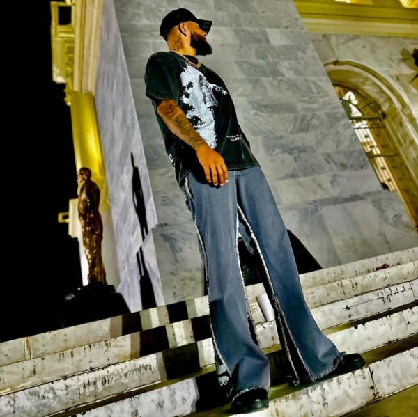The combination of a black shirt and blue pants may seem simple at first glance, but in the hands of Rodriguez, it becomes a powerful fashion statement. The black shirt, with its clean lines and classic silhouette, serves as the perfect canvas for his bold fashion choices. Paired with the blue pants, the outfit exudes a sense of effortless coolness that is hard to ignore.