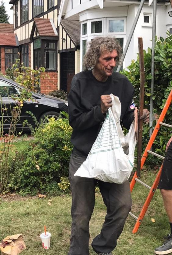 The roofers said the man been sleeping rough in a London park near a house they were working on and asked if he could help out after they gave him a cup of tea.