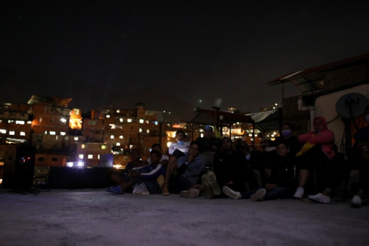 But on Monday evening, a calm had returned to the hills, with dozens of children flying kites from their roofs boasting stunning views of the valley of Caracas, and families enjoying popcorn and fried corn cakes known as arepas - a staple of the Venezuelan diet - while watching the film.