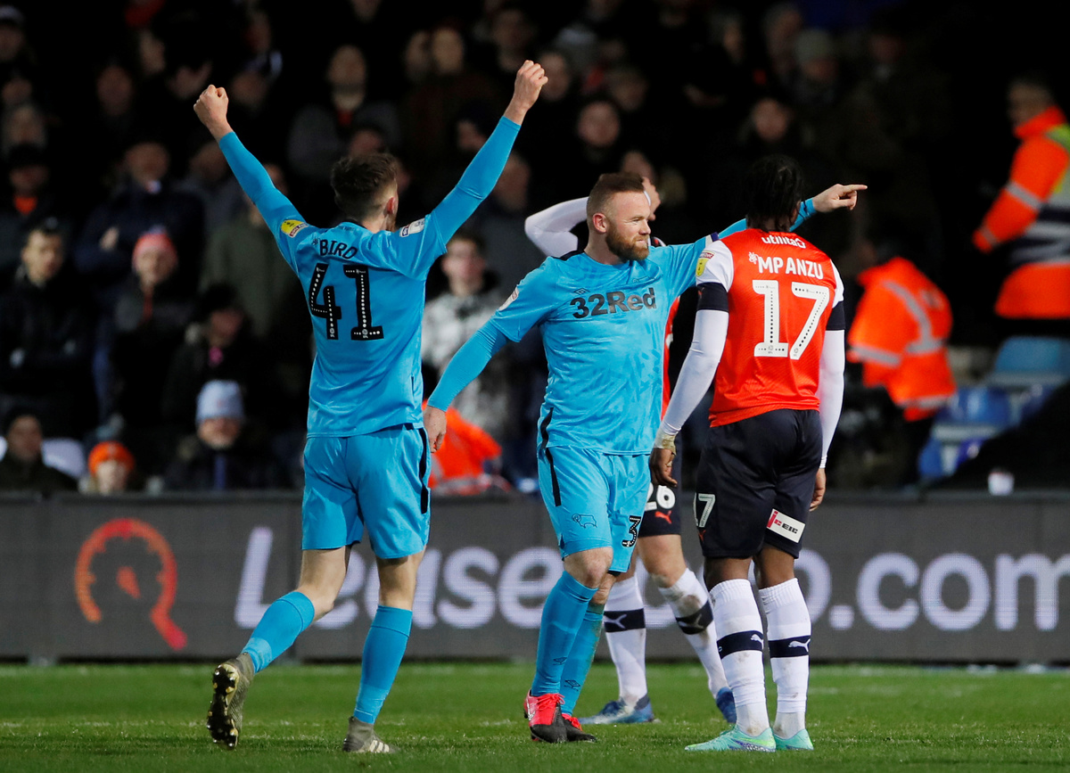 Soccer Football - Championship - Luton Town v Derby County - Kenilworth Road, Luton, Britain - January 28, 2020 Derby County's Wayne Rooney celebrates scoring their first goal Action Images/Andrew Couldridge