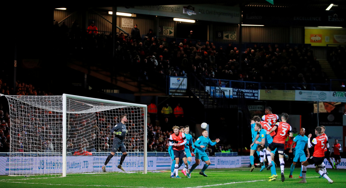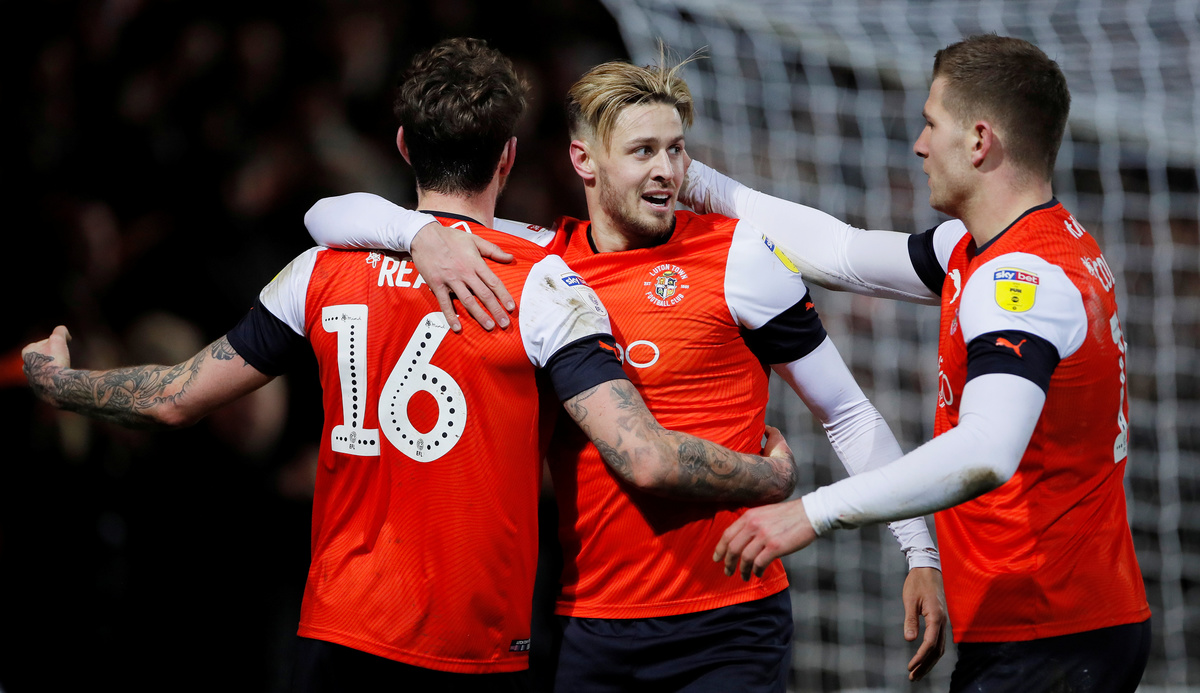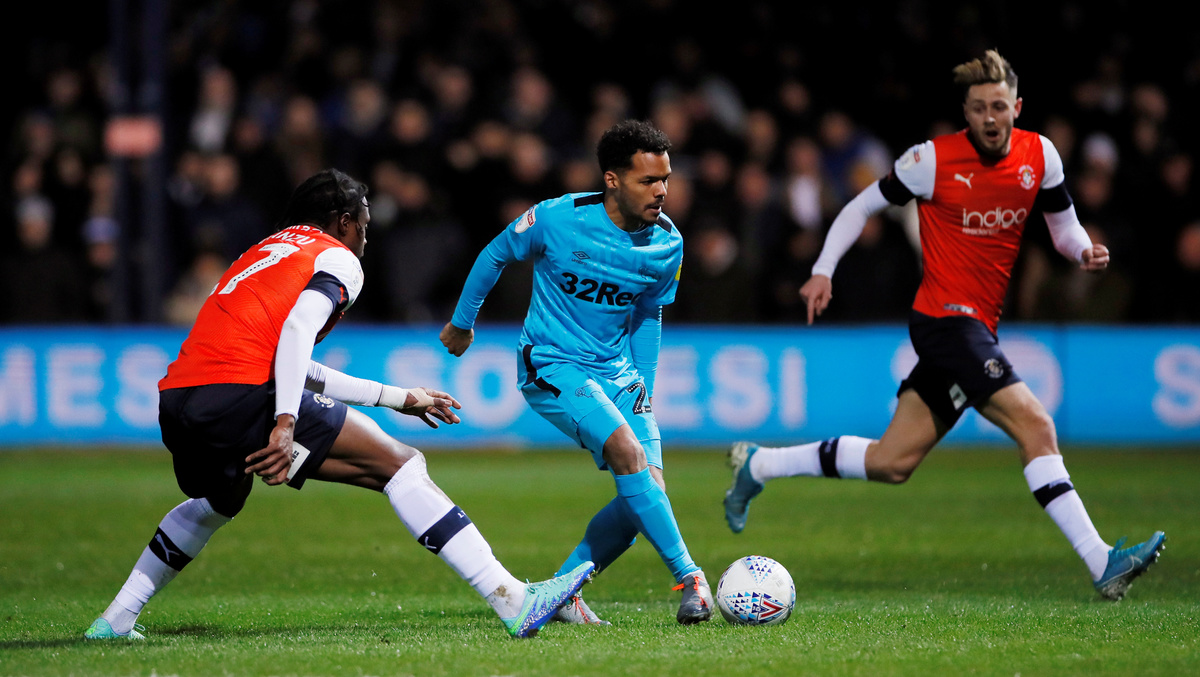 Soccer Football - Championship - Luton Town v Derby County - Kenilworth Road, Luton, Britain - January 28, 2020 Luton Town’s Donavon Daniels scores their second goal Action Images/Andrew CouldridgeSoccer Football - Championship - Luton Town v Derby County - Kenilworth Road, Luton, Britain - January 28, 2020 Luton Town's Harry Cornick celebrates scoring their third goal with Glen Rea and James Collins Action Images/Andrew CouldridgeSoccer Football - Championship - Luton Town v Derby County - Kenilworth Road, Luton, Britain - January 28, 2020 Luton Town's Harry Cornick celebrates scoring their third goal with Glen Rea and James Collins Action Images/Andrew CouldridgeSoccer Football - Championship - Luton Town v Derby County - Kenilworth Road, Luton, Britain - January 28, 2020 Derby County's Duane Holmes in action with Luton Town's Pelly Ruddock Mpanzu Action Images/Andrew Couldridge