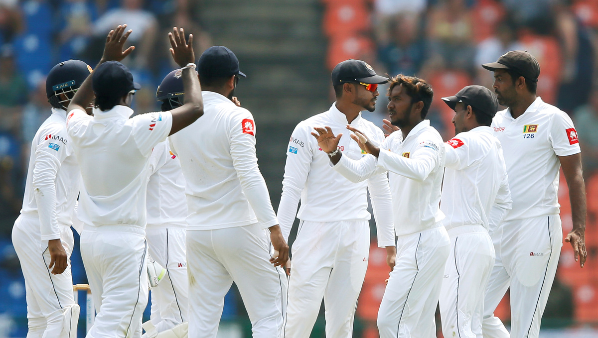England named an unchanged side but shuffled their batting lineup and Ben Stokes (19) was unable to justify his promotion to number three, the all-rounder surviving a review before succumbing to a second to be trapped lbw by Dilruwan Perera (4-61).