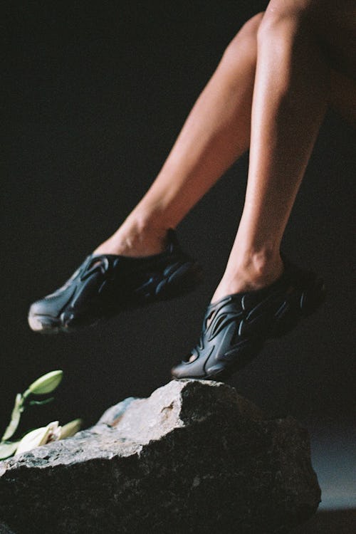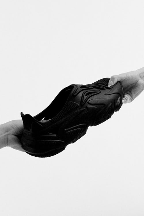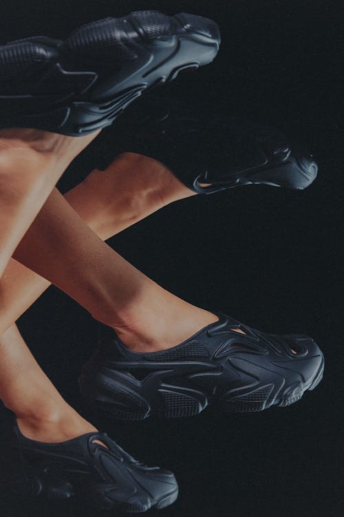Roughly two years of development went into making the dildo shoes become reality. The company’s unique recycling system grinds the defective sex toys into tiny cubes of TPE. Non-bleach EVA foam gets added to the mix, and the blend is molded into the Plastic Soul’s clog shape. The brand openly compares its look to other top dogs on the market, including Yeezy’s Foam Runner, a Crocs Classic Clog, and New Balance and Balenciaga sneakers. However, the key detail is that none can boast what the Plastic Soul can: its waterproof, sex toy-based genetic makeup.
