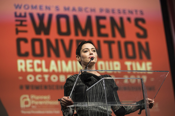 DETROIT _ Rose McGowan, the actor and activist, implored women to fight sexual harassment and assault by calling out harassers and naming names, though she didn't name any names during her remarks at the opening of the Women's Convention in downtown Detroit.