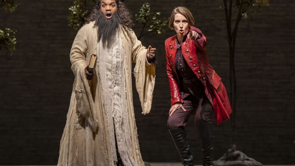 By shifting the staging out of the present and back to this theater of an earlier time, Sher in essence gives the audience permission to relax and guffaw at the saucy gags, and he is thus allowed to take full advantage of the opera’s comedic potential.
