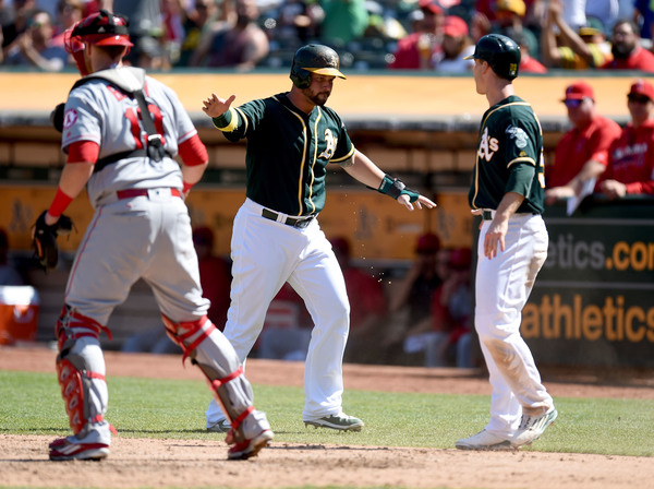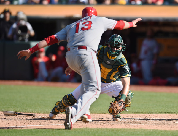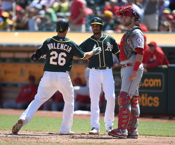 With Alcantara's hit batters leading to an early 3-0 Angels lead, the A's got two runs back right away with Danny Valencia's two-run homer in the bottom of the first.