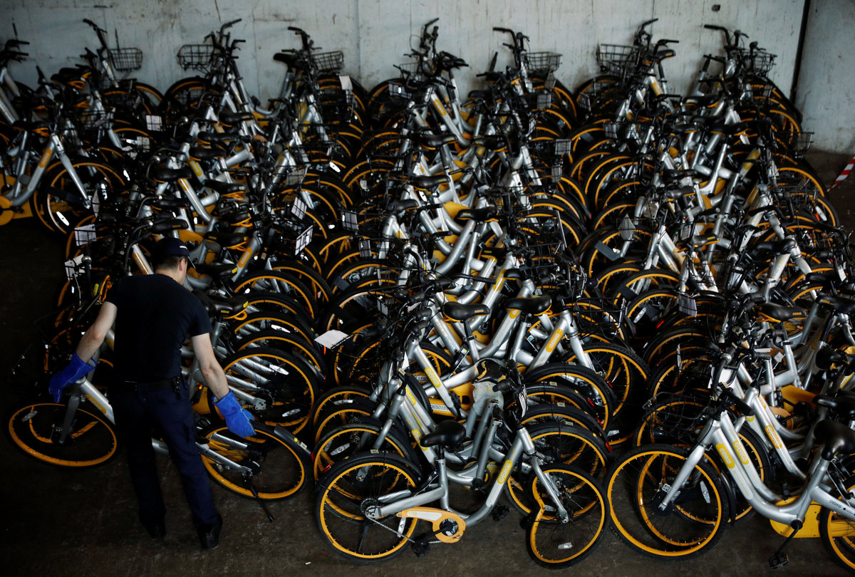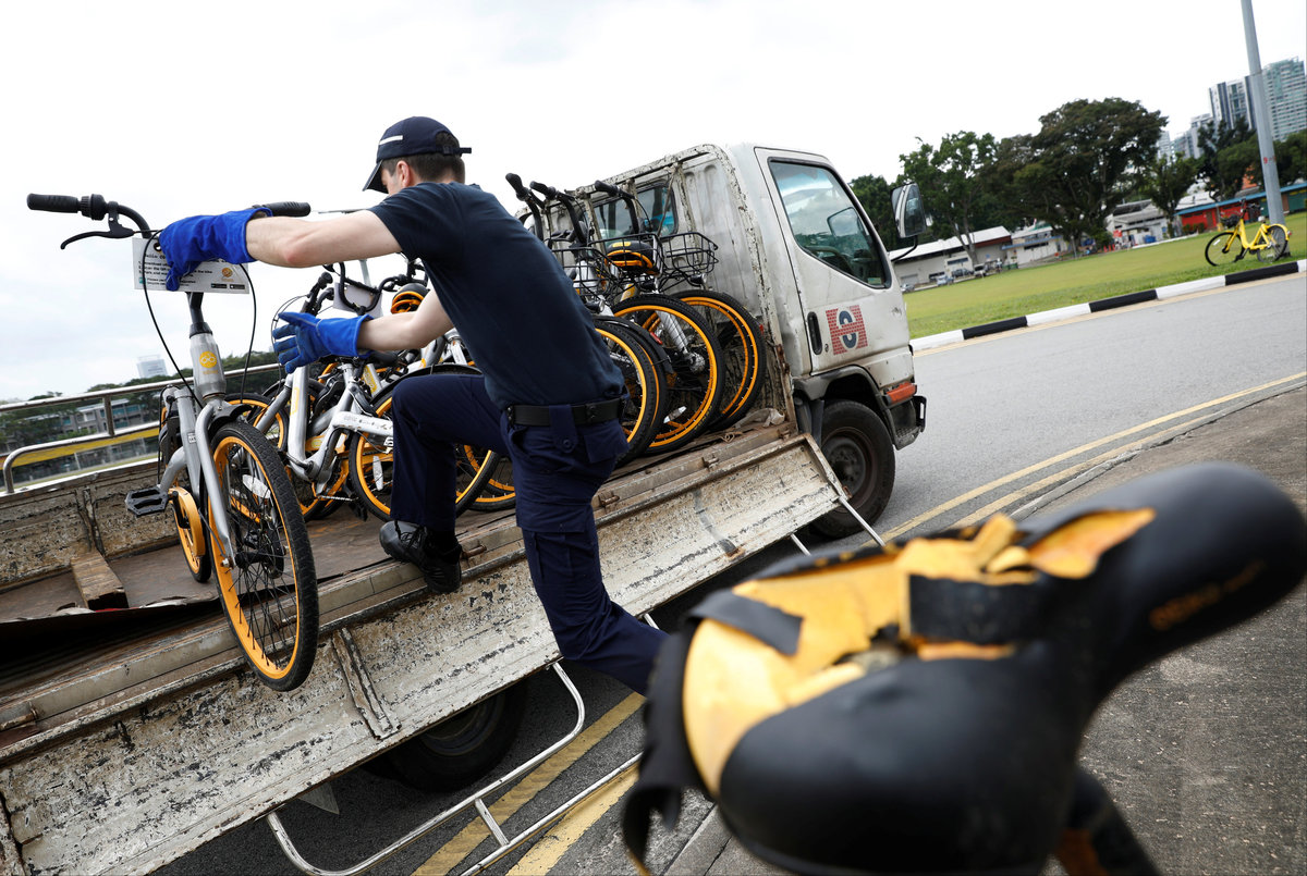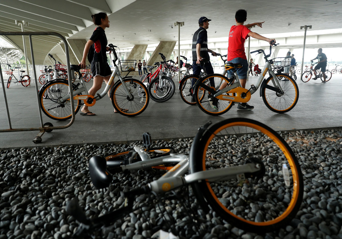 SINGAPORE (Reuters) - A sea of yellow and orange bicycles in Singapore's public spaces shows how quickly the city-state has embraced the shared-bike culture since major operators such as Chinese firms Ofo and Mobike first rode in a year ago.