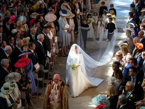 In something of a feminist statement, the now-Duchess of Sussex entered the chapel unaccompanied and began her walk down the aisle by herself. According to Kensington Palace, this was the plan even before it was realised her father Thomas Markle would not be able to attend the wedding due to ill health.