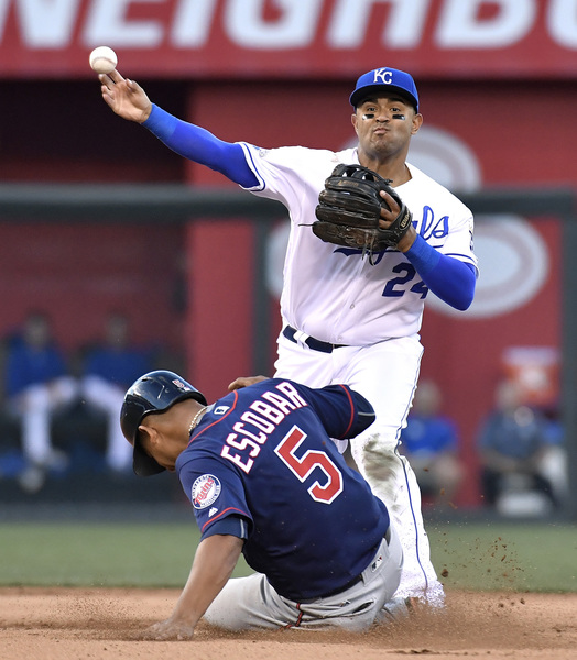 The good vibes would last all afternoon. Vargas permitted just one run in five innings, earning his first win since Aug. 13. Eric Hosmer finished 4 for 4 _ and 11 for 14 in the series. And the offense pulverized Minnesota starter Bartolo Colon for six runs in 1 2/3 innings before pouring it on late, securing a necessary split in the four-game series.