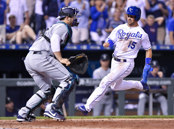Former Royals outfielder Jarrod Dyson tagged him twice for singles in his first game back at Kauffman Stadium since an offseason trade relocated him to Seattle. Dyson also stole a base off Salvador Perez for the second time this season.