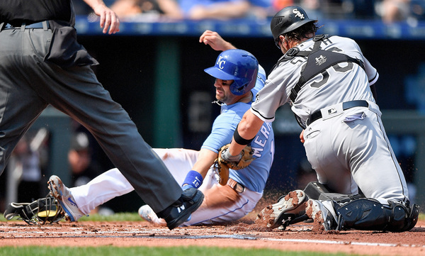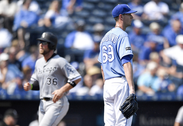 Moustakas is ostensibly playing on one good leg. He is still sitting on 36 homers after clubbing just one in his last 22 games. On Monday, the pain appeared to surface on two errant throws to first. The first came on a potential double play in the fourth in which Moustakas stepped on third base and spiked a throw to first. The other came after the White Sox had struck for a run in the sixth on a single by Yoan Moncada and a triple by Jose Abreu.