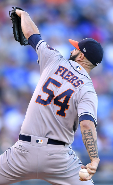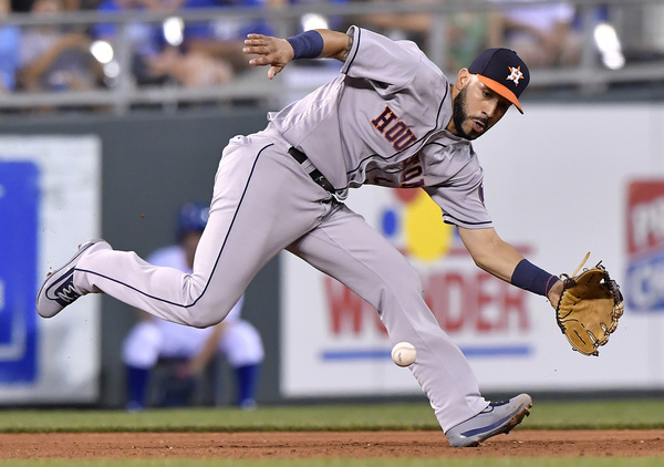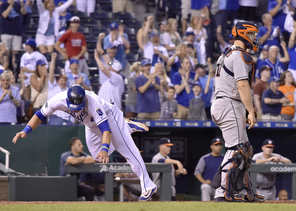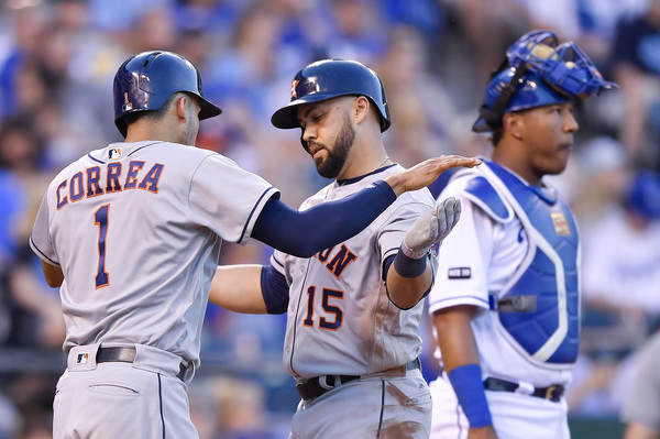 In the sixth, the Royals had put two runners on when Eric Hosmer opened the inning with a single and Salvador Perez followed with an infield single that ended up in right field when third baseman Marwin Gonzalez misfired on a throw to second base. With runners at the corners and nobody out, Astros manager A.J. Hinch pulled starter Mike Fiers, turning the game to left-handed reliever Reymin Guduan. Mike Moustakas would line out to third base before Brandon Moss and Alcides Escobar struck out to end the inning.