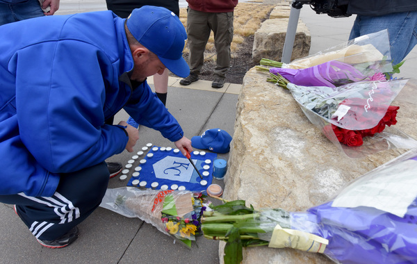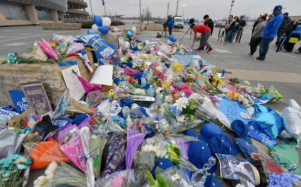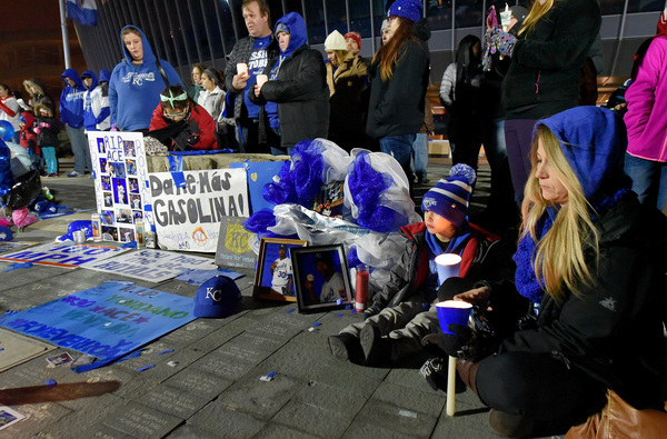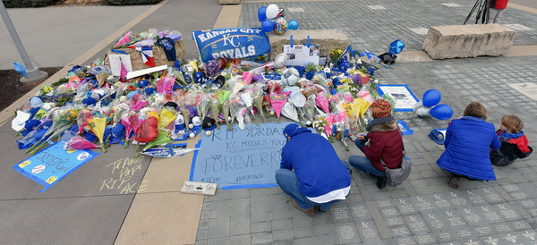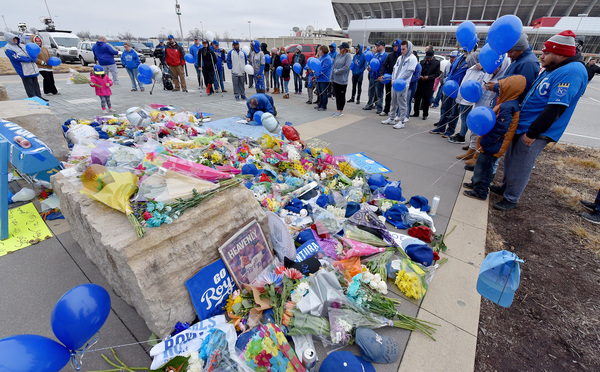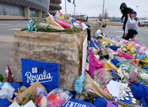 The majority of Royals fans who traveled to Kauffman Stadium said they received the news via social media. After scrolling across Twitter, Michael Schley, 20, got in his blue pickup and dropped off a bouquet of flowers.