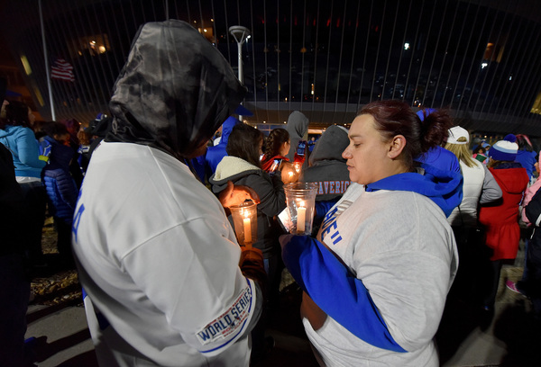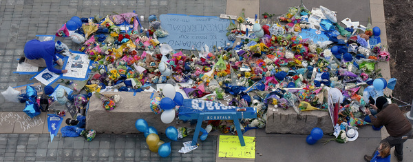 Some fans took pictures. Others stood silently behind the growing memorial.