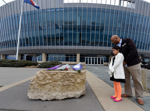 "When you grow so close to these players _ whether it's baseball, football, whatever _ when you lose one, you kinda feel like you're losing one of your own," said Katie Okenquist, who dropped off flowers with her husband and two-year-old son, Alex. "It was just a really hard thing to hear this morning."