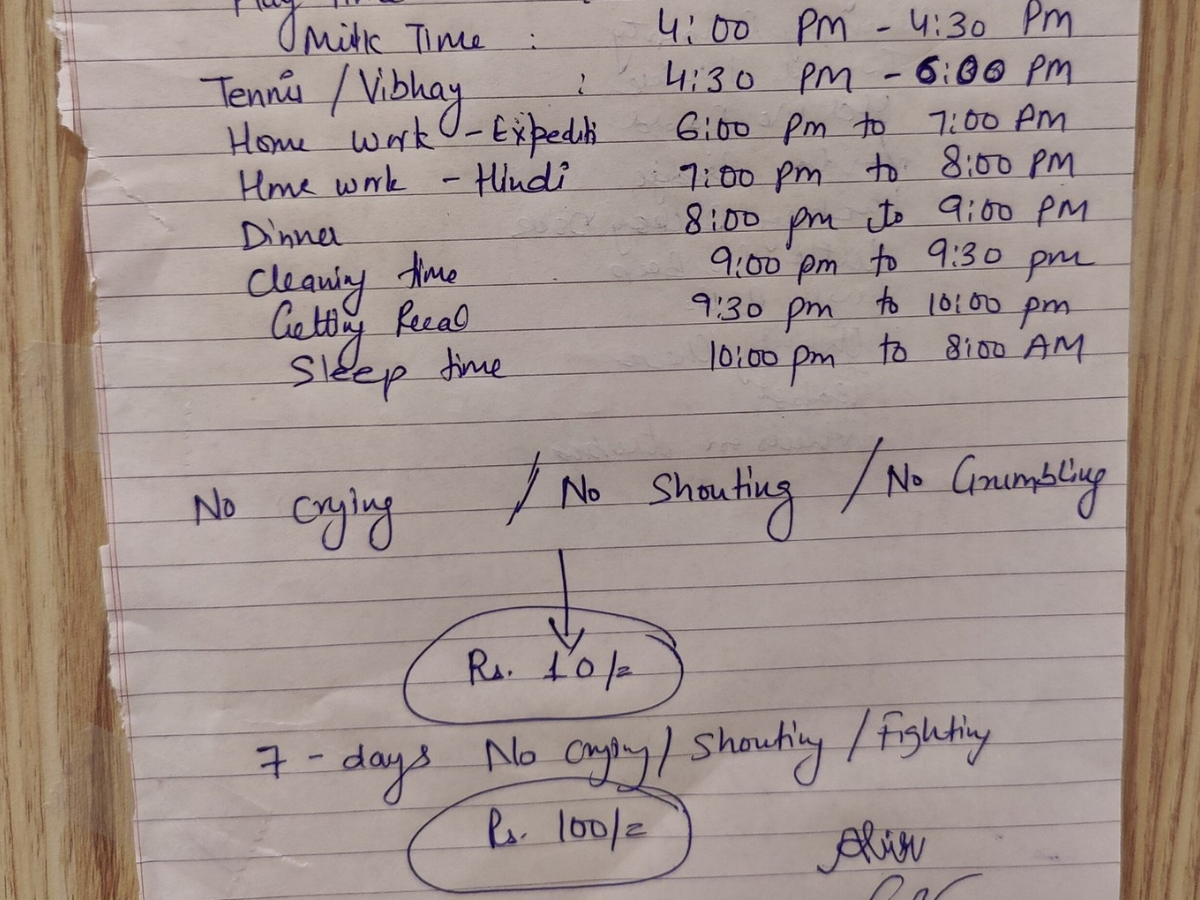 "He's really excited about getting a Rs 10 note that he puts in his piggy bank at the end of the day and looks forward to it the whole day and he doesn't have to follow the time table exactly but even if he tries to be mindful of the broad schedule, he gets his bonus. He is looking forward to savings and buying a new toy at the end of the month," he said.