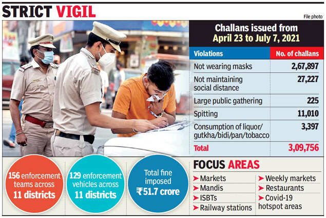NEW DELHI: If you had to put a figure to crass indiscipline, it would be 51.7 crore. That is the amount in rupees collected from careless Delhiites between April 23 and July 7 for disregarding Covid-appropriate behaviour.
