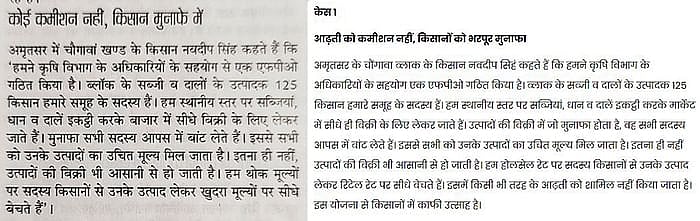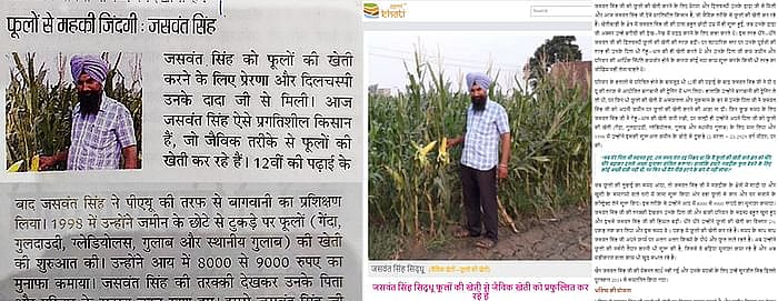 One of these stories is about Sujeet Singh from Tingori village in Mohali, Punjab. He has been an organic farmer since retiring from the Punjab police. Jagran carried his story in December 2020. Panchjanya changed the headline and certain words in the long report and removed some sections.
