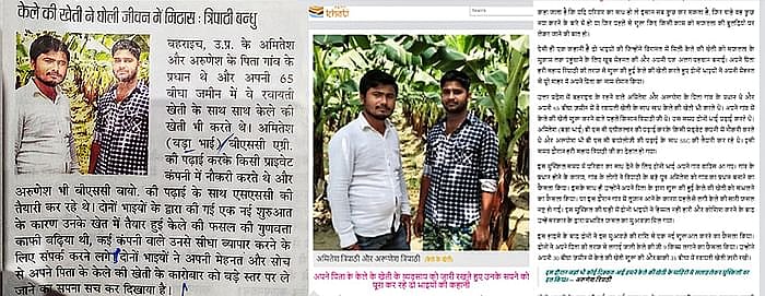 Of the other 13 success stories carried by Panchjanya, seven are lifted from the newspaper Dainik Jagran. That’s not all: it splits one Jagran report about three farmers into three stories. They are reproduced verbatim, or with minimal editing.