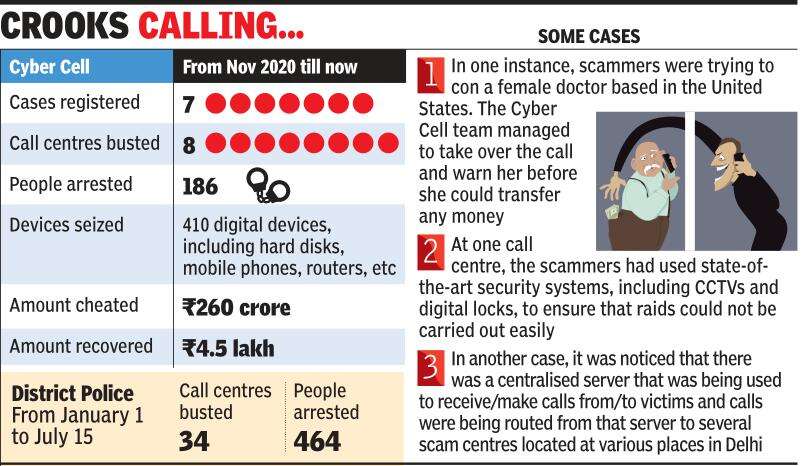 Till date this year, the cops have busted 34 fake call centres and arrested around 464 people, while the Cyber Cell has brought down eight call centres and arresting 186 people involved in cheating people of around Rs 260 crore.