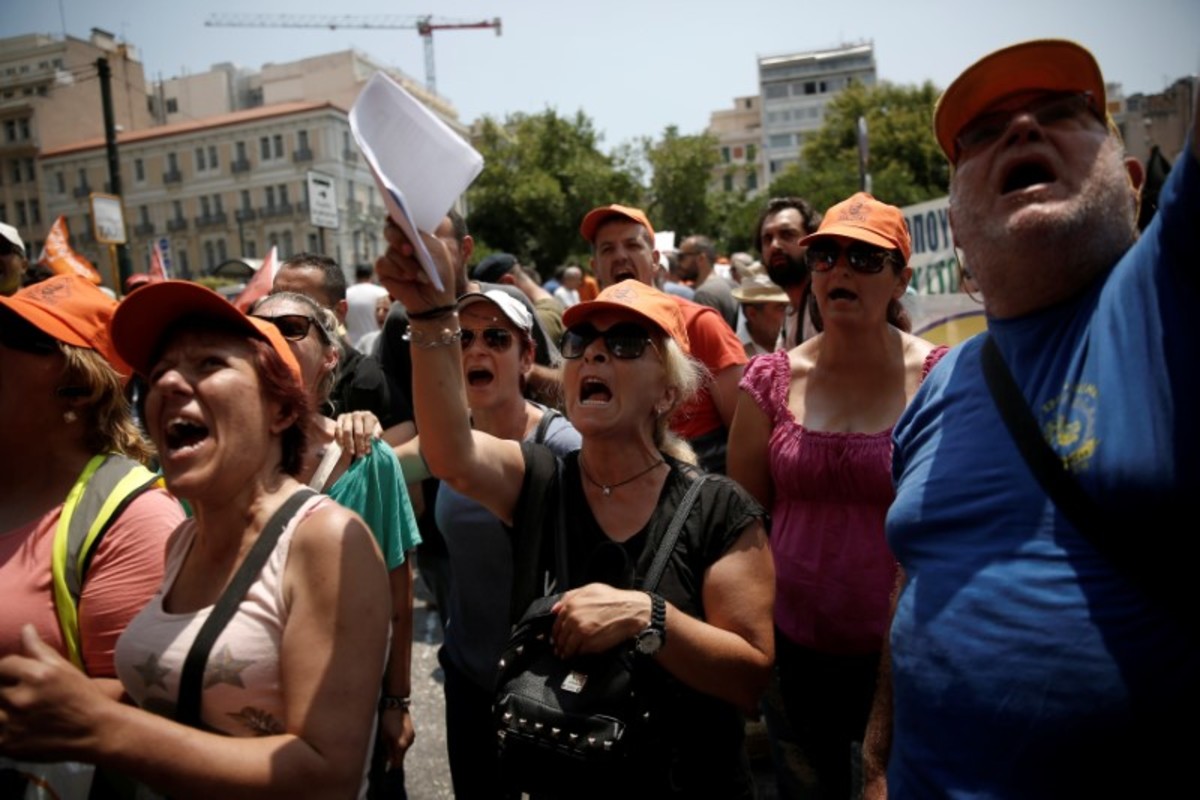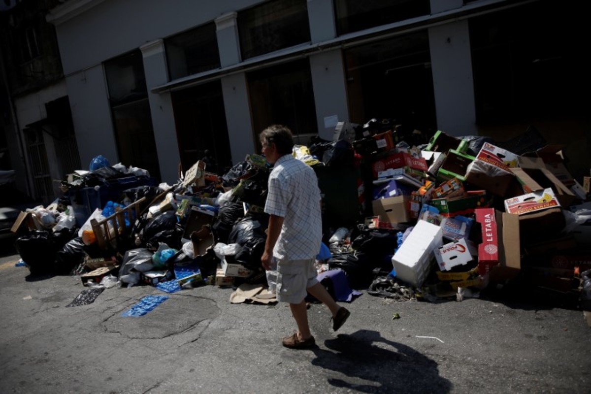 Pensioner Fotini Papadaki held her nose as she added her own small bag to the mounds. "It's deplorable, I understand job worries but taking it out on society ... is going too far," she said.