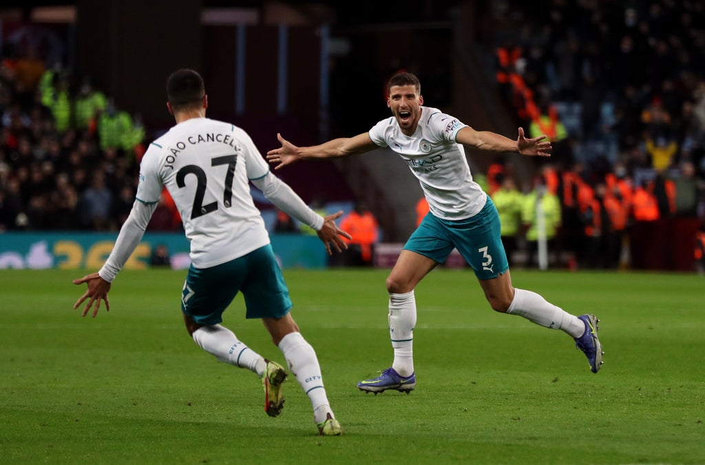 The defender’s opener and Bernardo Silva’s stunner earned the champions a 2-1 win at Villa Park on Wednesday.