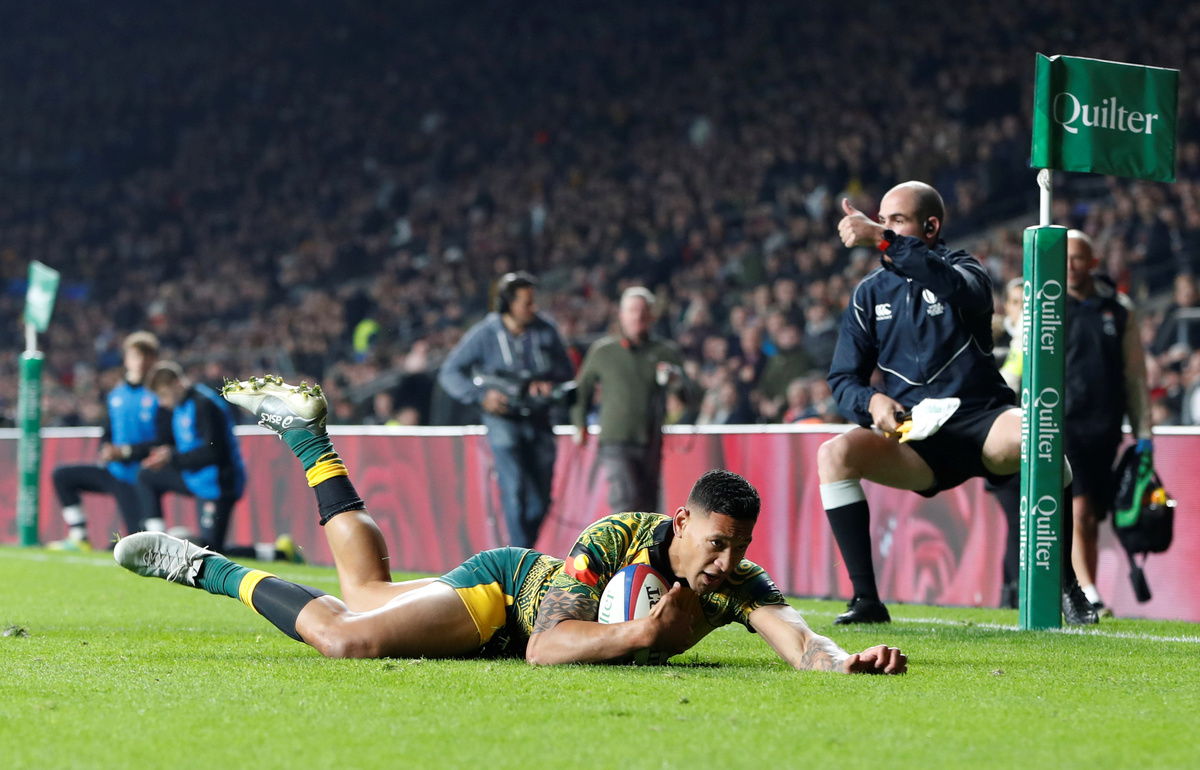 The frustrated home fans soon had more to cheer though as Farrell sliced through the tiring Wallaby defence for England’s fourth try, and Folau’s last-gasp consolation did little to dampen the celebrations.