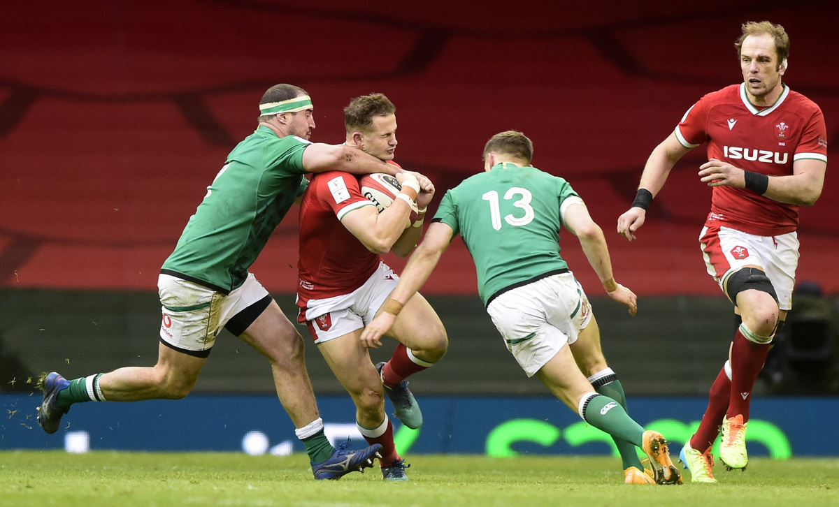 But as Ireland tired with their numerical disadvantage, Wales found space in the visitors’ 22, and centre North and wing Rees-Zammit crossed for tries, to go with three penalties and a conversion from fullback Leigh Halfpenny.