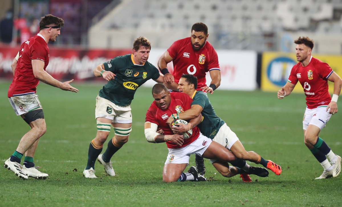 South Africa wing Cheslin Kolbe was fortunate to escape a red card when he connected with airborne Lions scrumhalf Conor Murray. He was sent to the sin-bin.