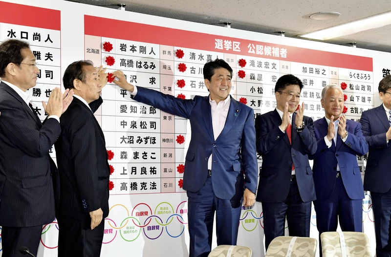 Another focus of attention is whether there will be two-thirds, or 164 seats, of members in the upper house that favor amending the Constitution. Abe needs the ruling bloc with Nippon Ishin no Kai and others, including unaffiliated lawmakers who support constitutional amendments, to make up two-thirds of the majority in both houses to initiate moves on revising the Constitution.