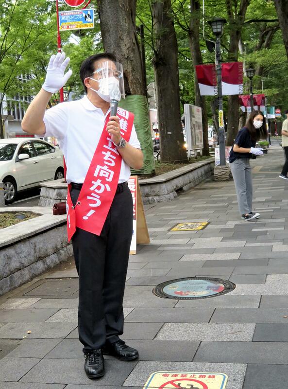 With a mask and face shield on, former State Minister of Defense Akihisa Nagashima was giving a street speech in front of a shopping mall in Fuchu, Tokyo, on Friday evening. The LDP member plans to run for election in Tokyo Constituency No. 18.
