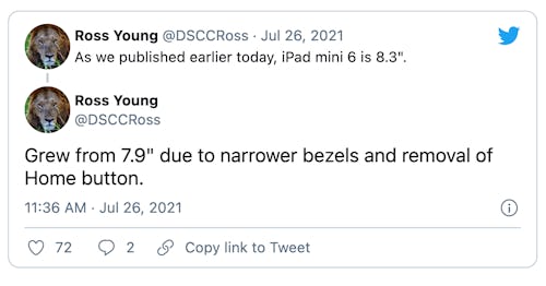 Reports of late have suggested that Apple plans to revamp the iPad mini with a design similar to that of the latest iPad Air and iPad Pro. Now, credible Apple tipster Ross Young has corroborated that possibility in a series of tweets.