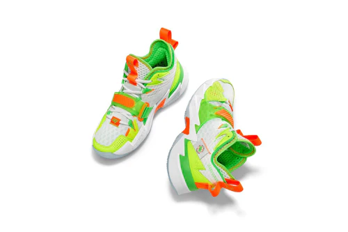 The more playful sneakers have been dubbed the "Splash Zones" and take on an instantly recognizable color scheme with neon green, orange, and yellow culled from the elite water guns. Other details reference the toys, the best of which is the "No Batteries Required" tag near the rear of the shoe. Water droplets also feature throughout, most prominently on the insole in combination with the Jumpman logo. To complete the package, literally, they'll come in a display box similar to the ones Super Soakers are sold in.
