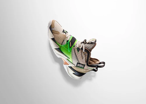Westbrook and his best friend, Khelcey Bars III, both had dreams of going to UCLA and playing with each other before Bars died of an enlarged heart during a pickup basketball game. Because Westbrook says him and his friend were "always ready to go to battle for each other," this Why Not Zer0.3 takes loose inspiration from camouflage with a combination of green and several shades of brown. A more literal reference comes with a "KB3" patch appearing in the same place as "No Batteries Required" on the other shoe.