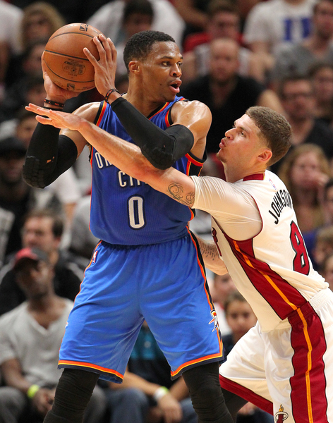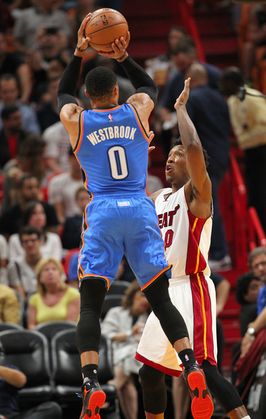 The Heat had three rebounds and four assists in the first period, the same total a Westbrook, who also scored eight points during his 10 minutes in that first quarter.