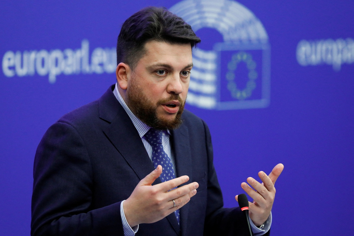 FILE PHOTO: Leonid Volkov, chief of staff for Navalny's campaign for the 2018 presidential election, speaks during a press conference after the award ceremony of the Sakharov Prize at the European Parliament in Strasbourg, France, December 15, 2021. Julien Warnand/Pool via REUTERS