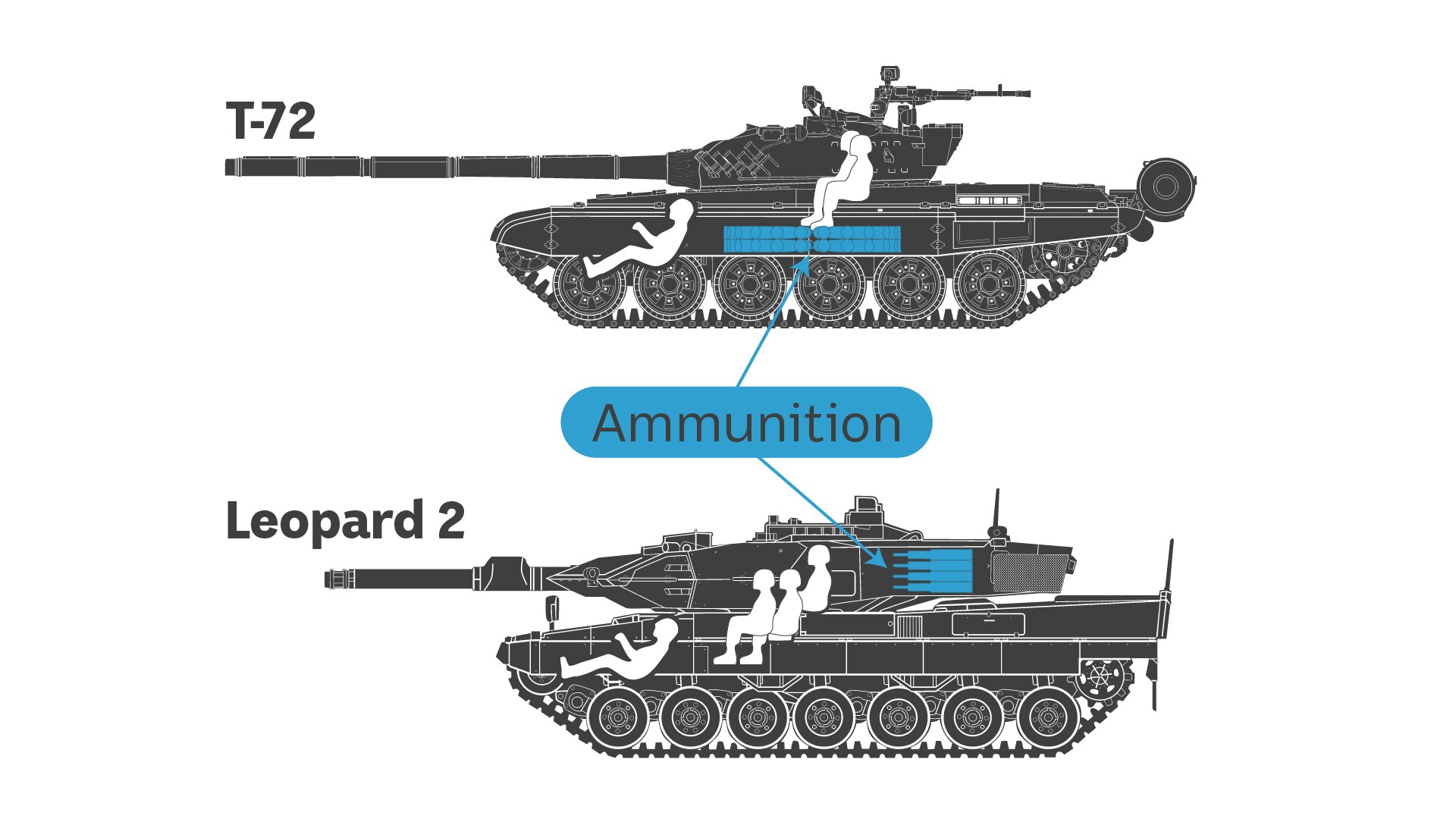 Ammunition is stored outside the turret and there is less danger of rounds detonating if the turret is hit.